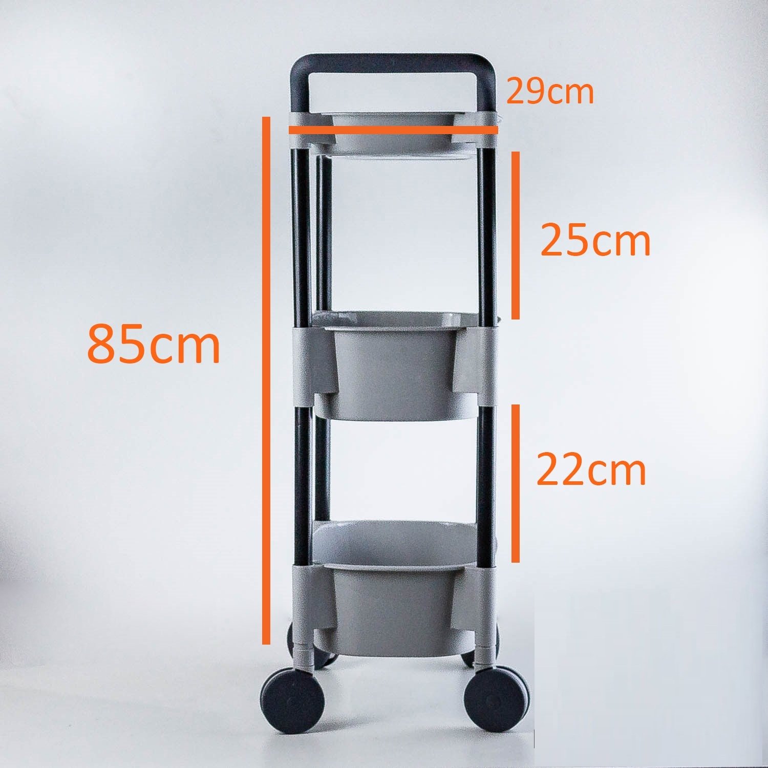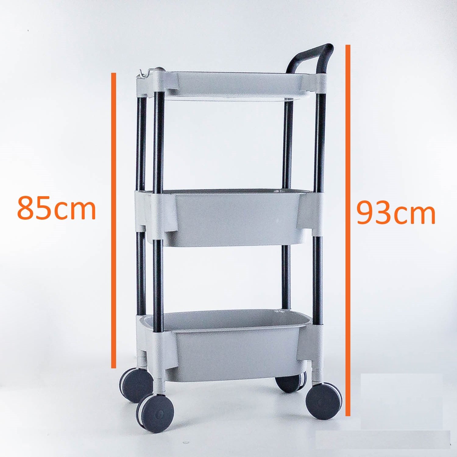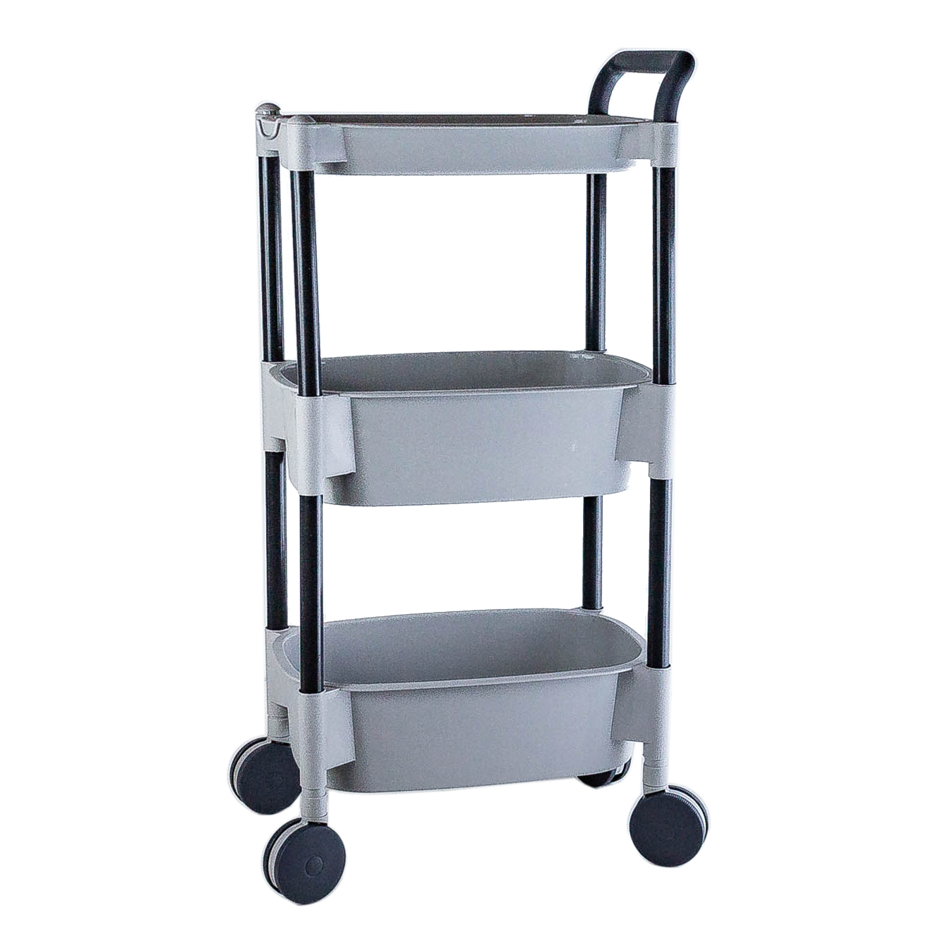 Fabricado con materiales de alta calidad, este carro es resistente y duradero, ideal para el uso diario. Sus tres canastos ofrecen un amplio espacio de almacenamiento, mientras que las ruedas facilitan su movilidad, permitiéndote moverlo de un lugar a otro sin esfuerzo.